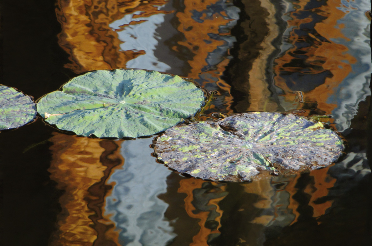 Blätter einer Lotuspflanze empfangen morgendliche Sonnenstrahlen