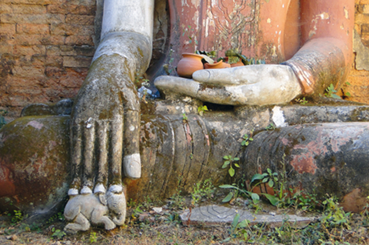 Erdberührungsgeste einer tönernen Buddhafigur