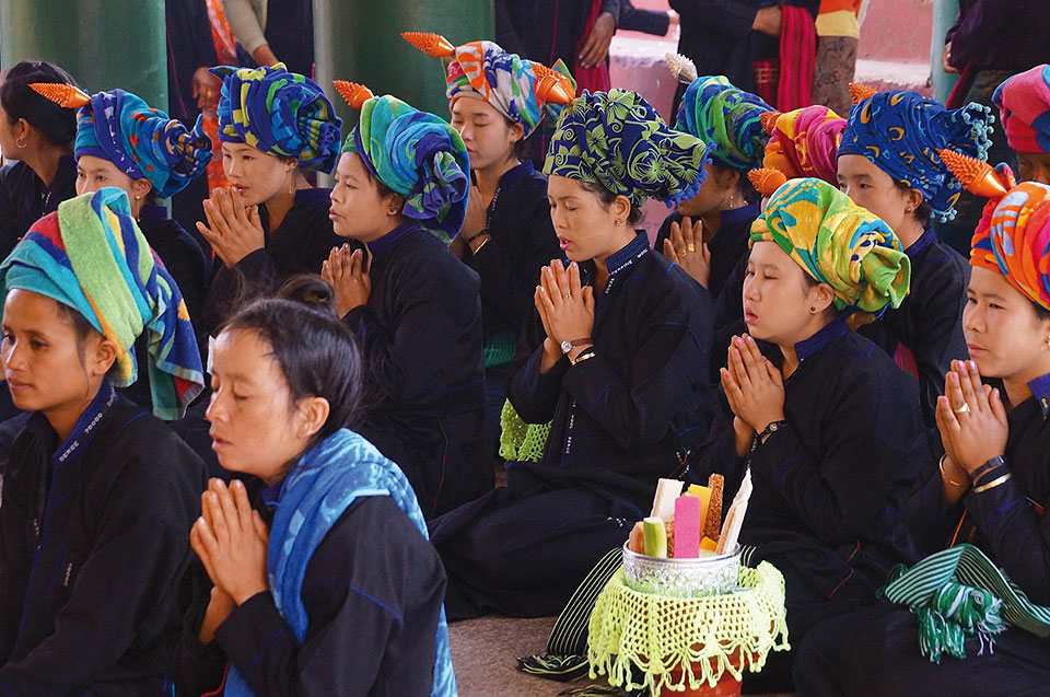 Betende Pa-O Frauen beim Vollmonfest des Tabaung in Kakku.